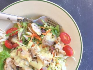 183 calories 12g fat 6g net carbs 13g protein My carbs were higher than needed because I only had lite thousand island dressing. 1 juice from 1 lemon. Is thousand island dressing dairy free.